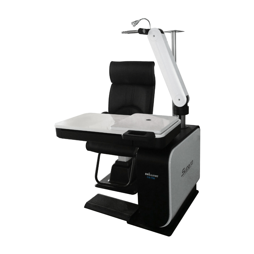 Надзвичайно тихе електричне розкішне підйомне крісло, тихий та стабільний, електричний поворотний механізм, може повертатися вліво та вправо, може підійматися та опускатися, стільниця може обертатися на 90°, оснащена рухомою підставкою для офтальмологічного приладу та висувною шухлядою для розміщення інструментів для проведення огляду пацієнтів.