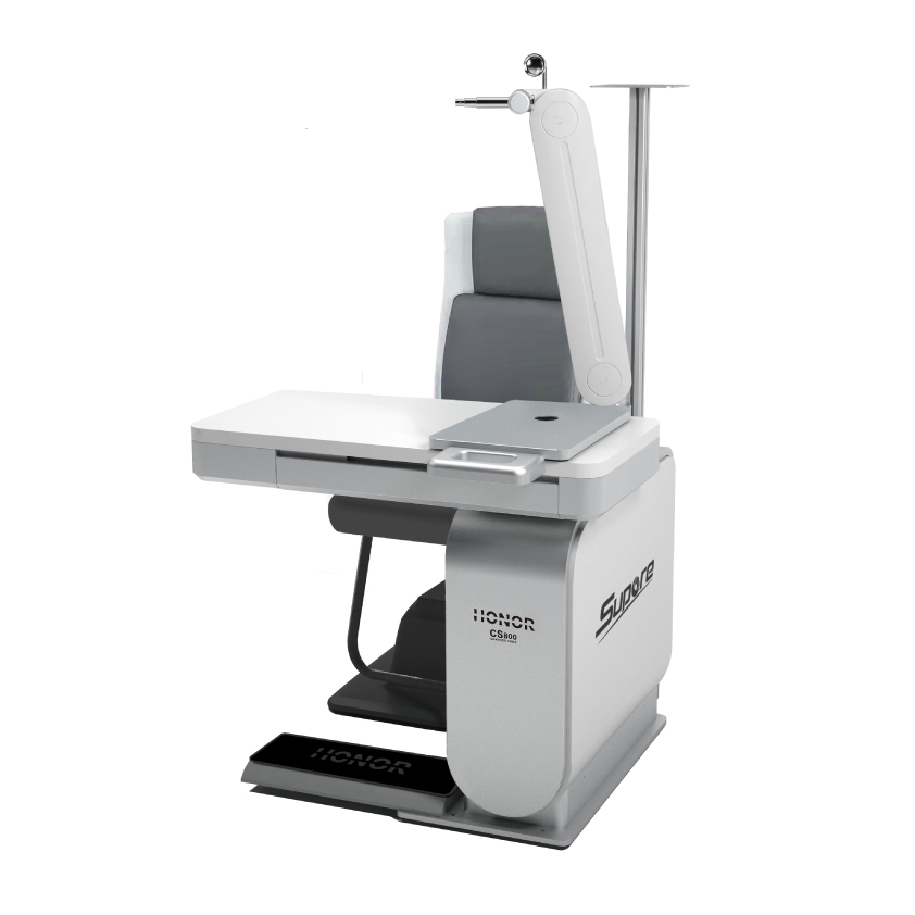 Надзвичайно тихе електричне розкішне підйомне крісло, тихий та стабільний, електричний поворотний механізм, може повертатися вліво та вправо, може підійматися та опускатися, стільниця може обертатися на 90°, оснащена рухомою підставкою для офтальмологічного приладу та висувною шухлядою для розміщення інструментів для проведення огляду пацієнтів.