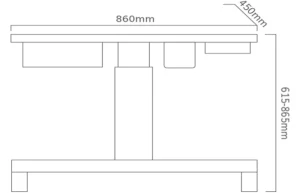 • Стіл доступний у двох варіантах стільниці — 860×450 мм (T86) та 1000×570 мм (T100), з плавним регулюванням висоти від 615 до 865 мм.